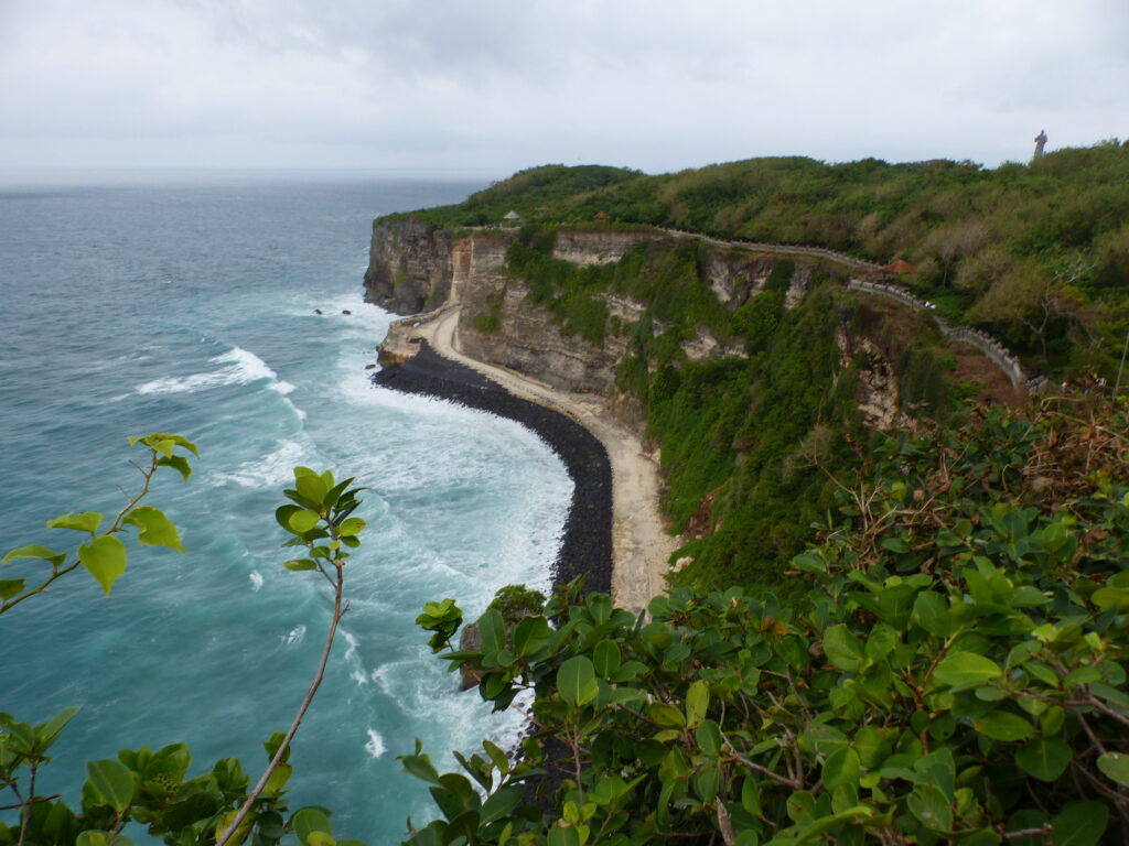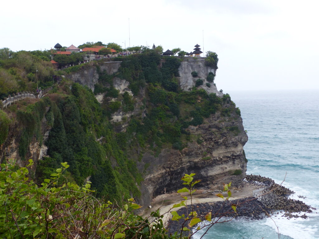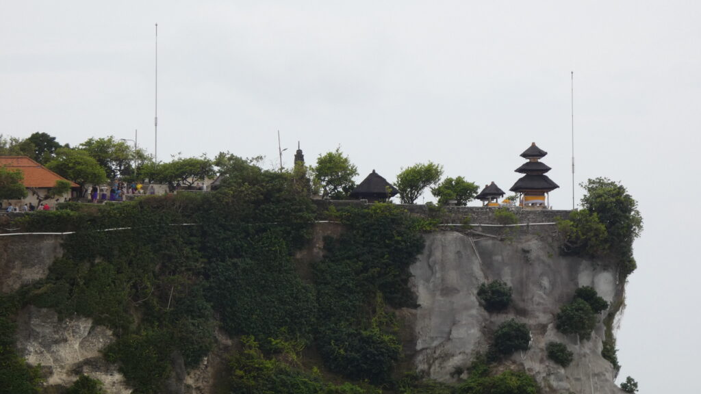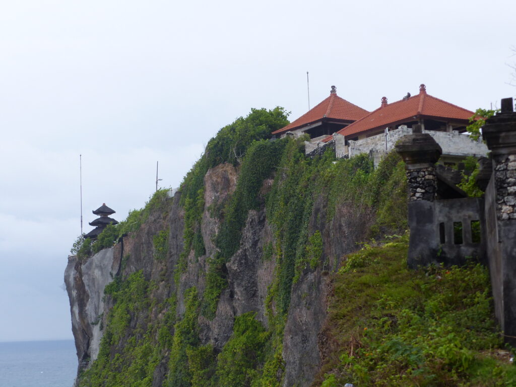 Nous poursuivons notre route jusqu’au temple d’Uluwatu dédié aux dieux de la mer. Il est situé à flanc de falaise, le panorama est exceptionnel.