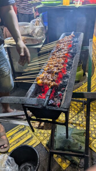 En fin d’après midi nous retournons dans le quartier proche de notre hôtel où se mêlent immeubles modernes, centre commercial et quartier animé le soir. On peut manger dans les Warung : petits restaurants où l’on mange et cuisine sur le trottoir. Ce soir on a choisi les fruits de mer et on s’est régalé avec un poisson grillé au Bbq.
