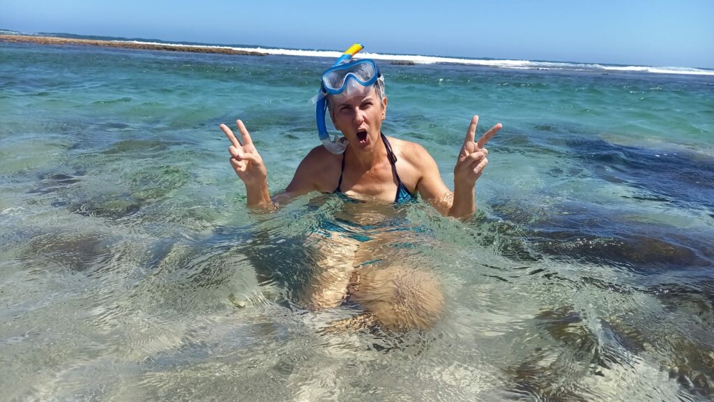 Il est 10h30, la température est difficilement supportable, nous rentrons faire une séance de masque et tuba dans l’océan. Ouf ça rafraîchi !
