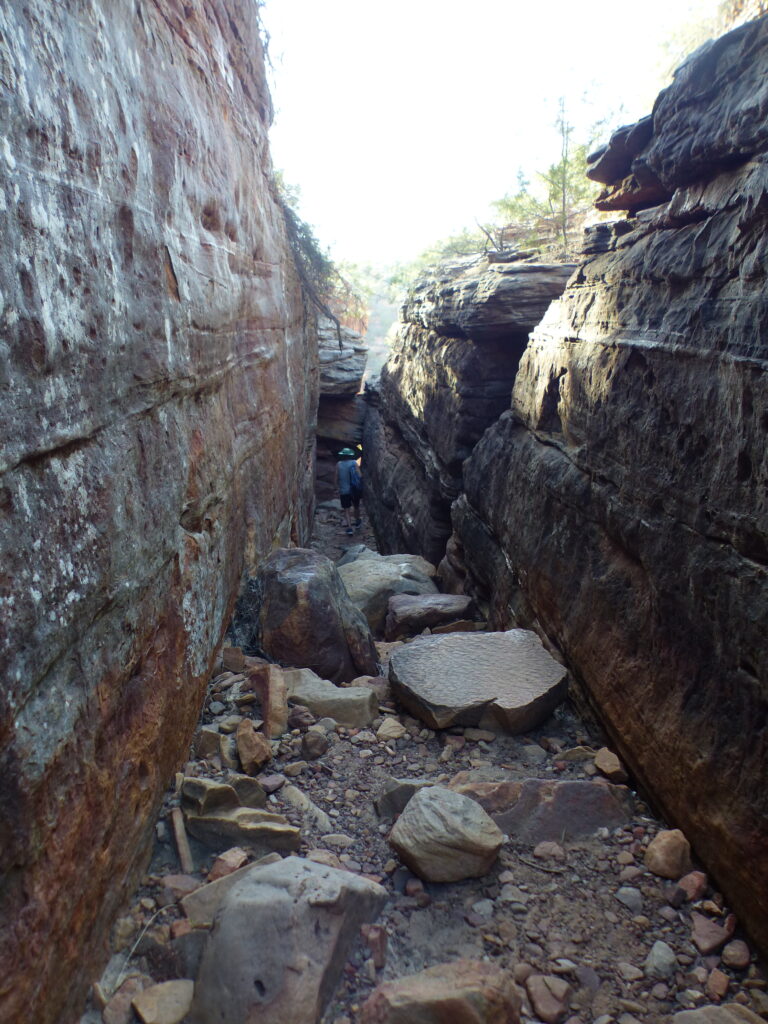 La balade nous emmène dans le bush jusqu’à un point de vue sur les gorges et ensuite y descendre. Comme souvent en Australie, l’itinéraire est très bien balisé et aménagé pour aplanir les difficultés.