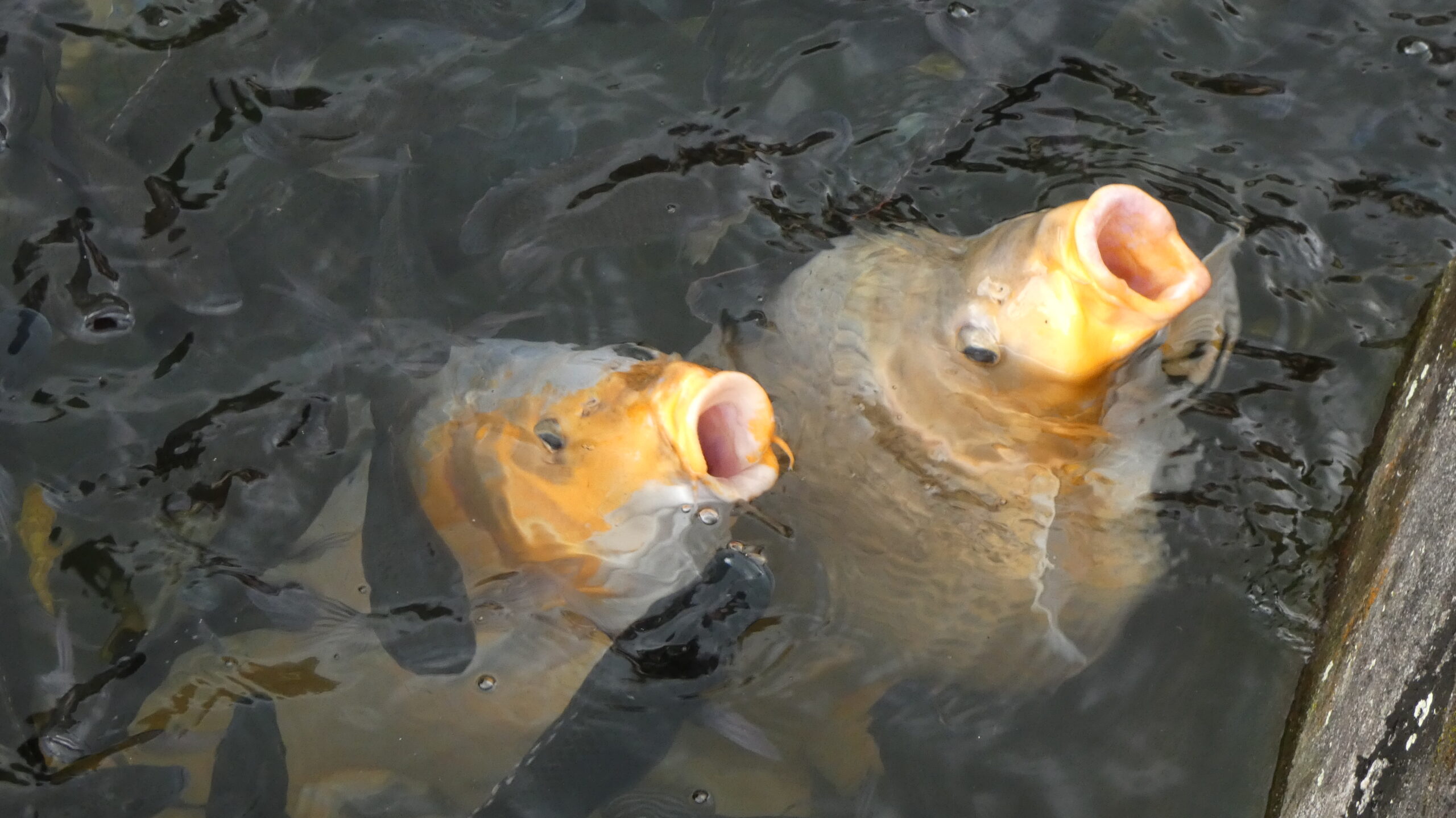 Le parc est orné de multiples statues bordant les allées ou émergeant des bassins. Partout des carpes géantes réclament les granulés vendus à l’entrée.