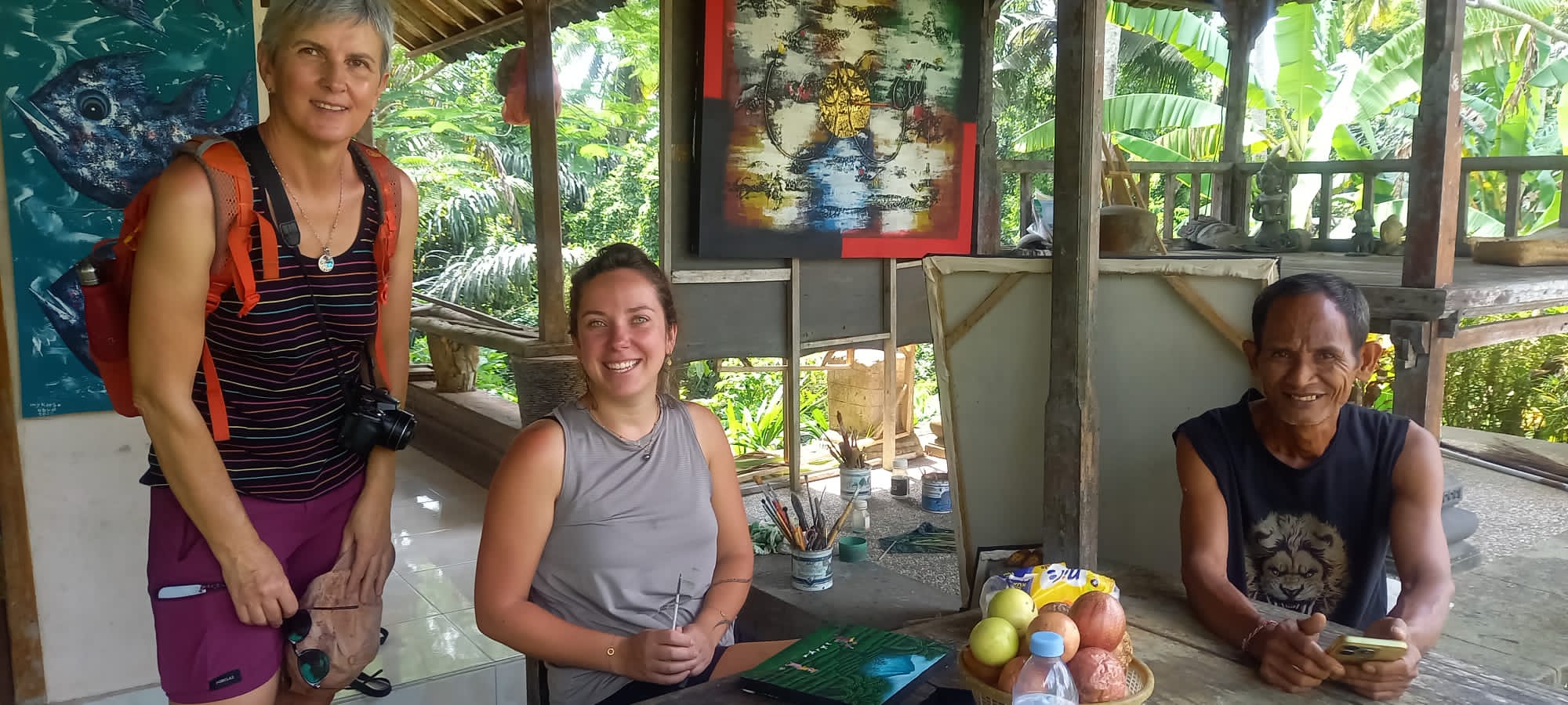 Ce matin nous partons en scooter en direction de Tenganan un village resté authentique. Sauf que erreur de pointage du GPS, nous nous retrouvons au beau milieu de la forêt sur des sentiers bétonné de 50cm de large. Le chauffeur n’a pas trop apprécié ! On fini par atterrir dans la cour d’une maison. La gentille dame qui ne comprend pas l’anglais fini par nous proposer de la suivre, elle nous ramène en « scooter cross » à un chemin plus large qui nous permet de retrouver notre route !